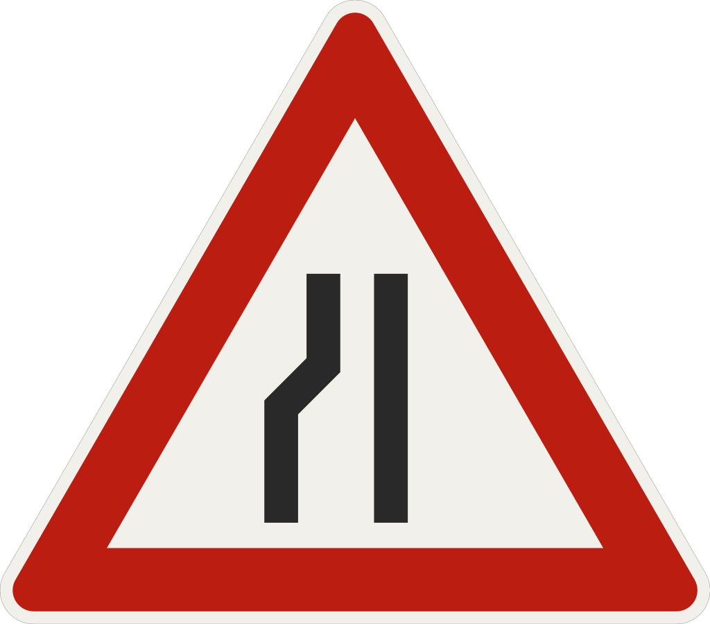 Značka upozorňuje na zúženú vozovku z vyznačenej strany alebo strán